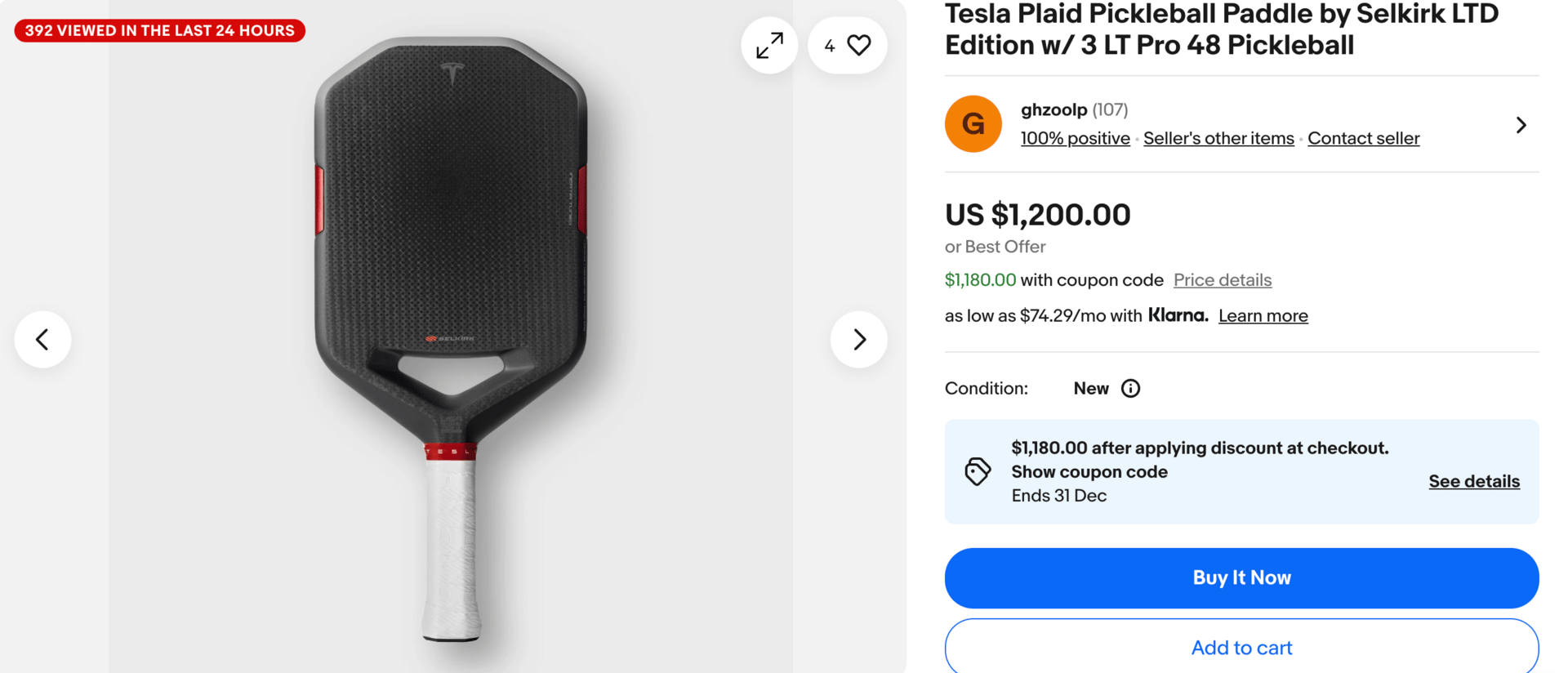 The Tesla Plaid Pickleball Paddle by Selkirk sold out almost immediately — which tells you everything you need to know.
